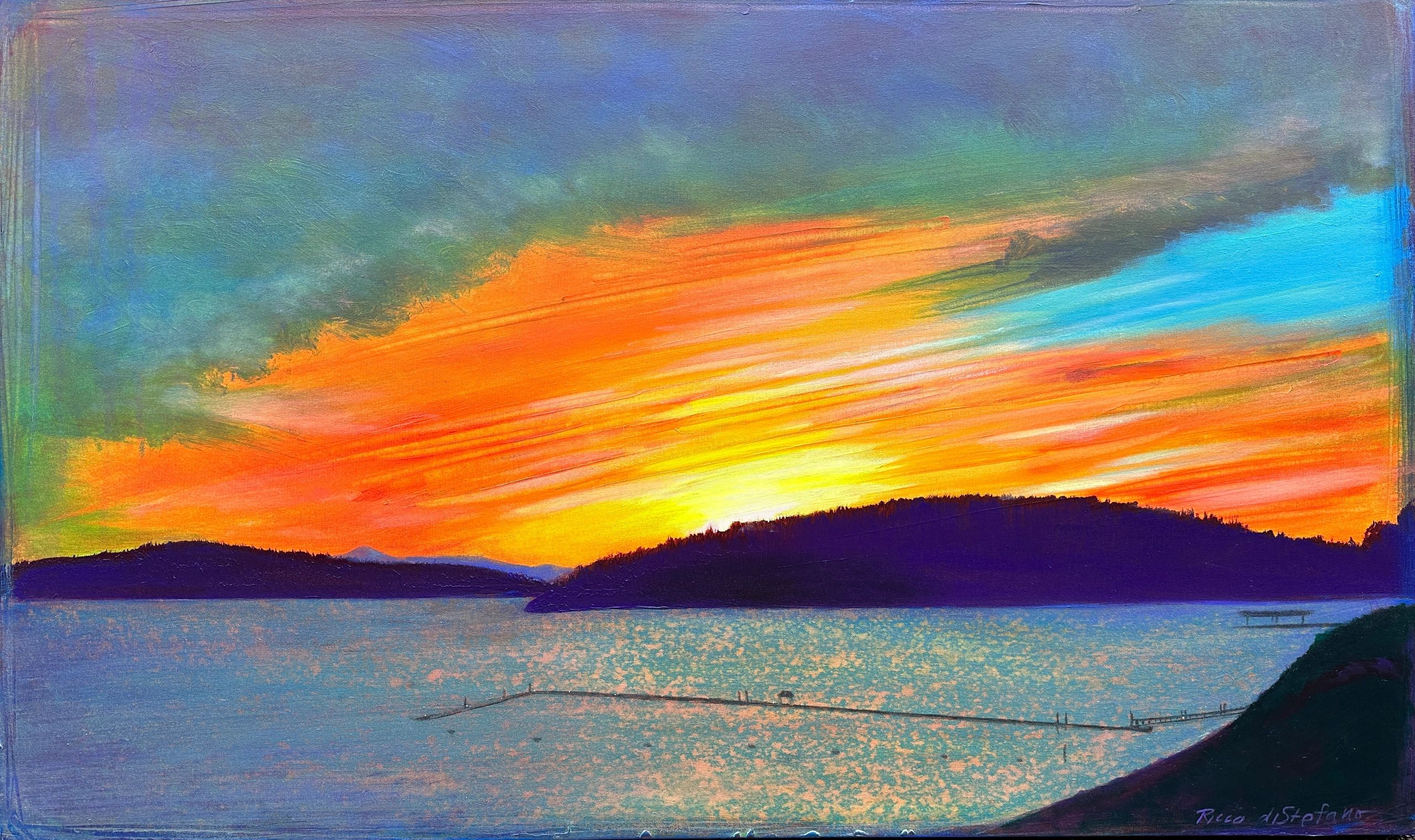 24 x 36 x 1.5 inch acrylic on canvas with painted gallery wrapped edges. Covered in a clear epoxy varnish.